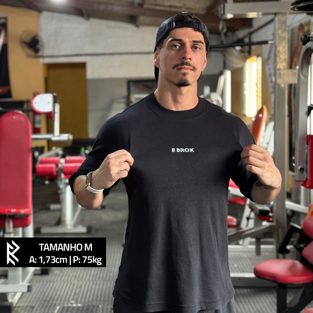 A modelagem oversized da Brok entrega caimento amplo, pesado e atual — exatamente o que o público street e training procura.